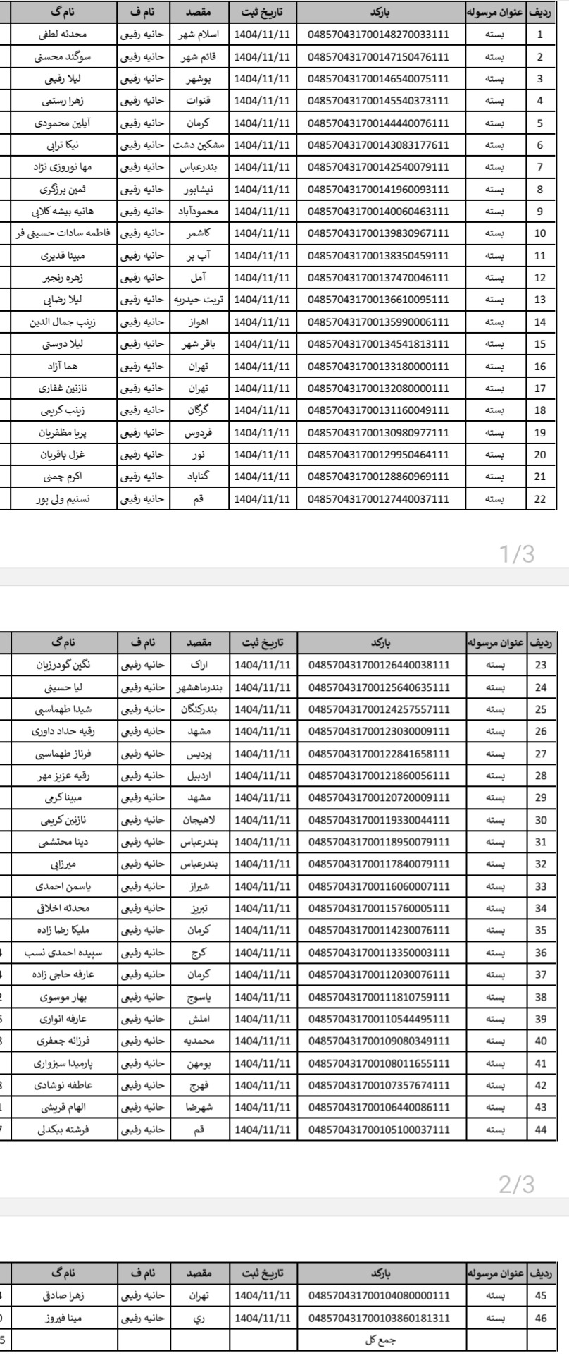 ارسالی های 11 بهمن ماه تاریخ: یکشنبه 12 بهمن 1404 - 19:44 نویسنده: jana صفحه: لیست روزانه ارسالی های جانا
